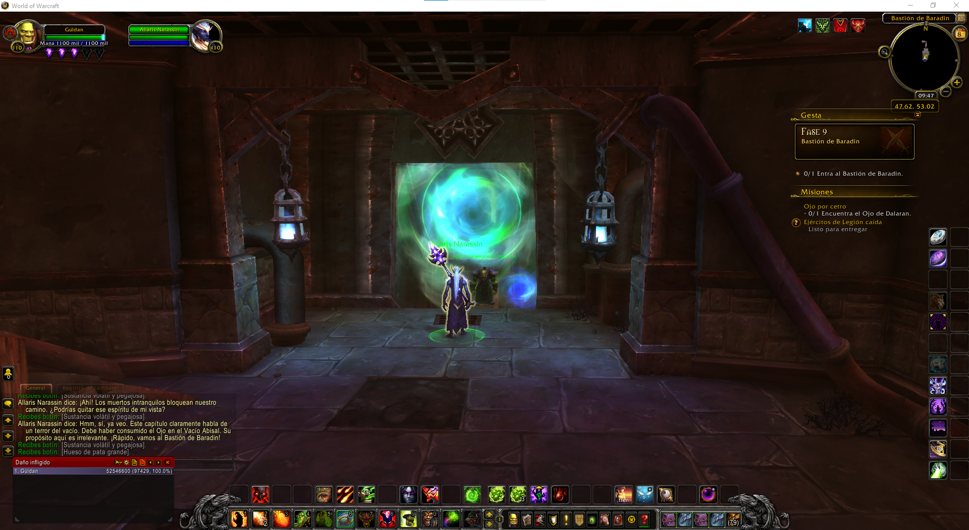 Buenos Dias el motivo del reporte esta relacionado a la quest para conseguir el arma artefacto del brujo destruccion, esto debido a que en la fase 9 llamada "Bastion de Baradin" no permite continuar con la quest, ya que no se puede ingresar al respectivo portal.