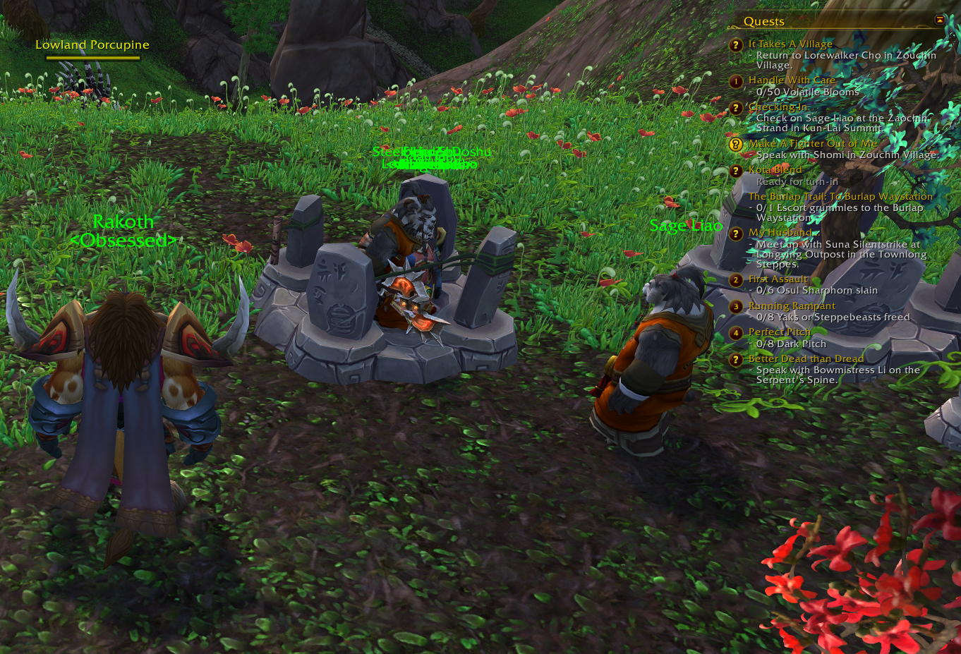 Also spawns multiple NPC's and an alter looking thing on player when quest is turned in at NPC 60757.