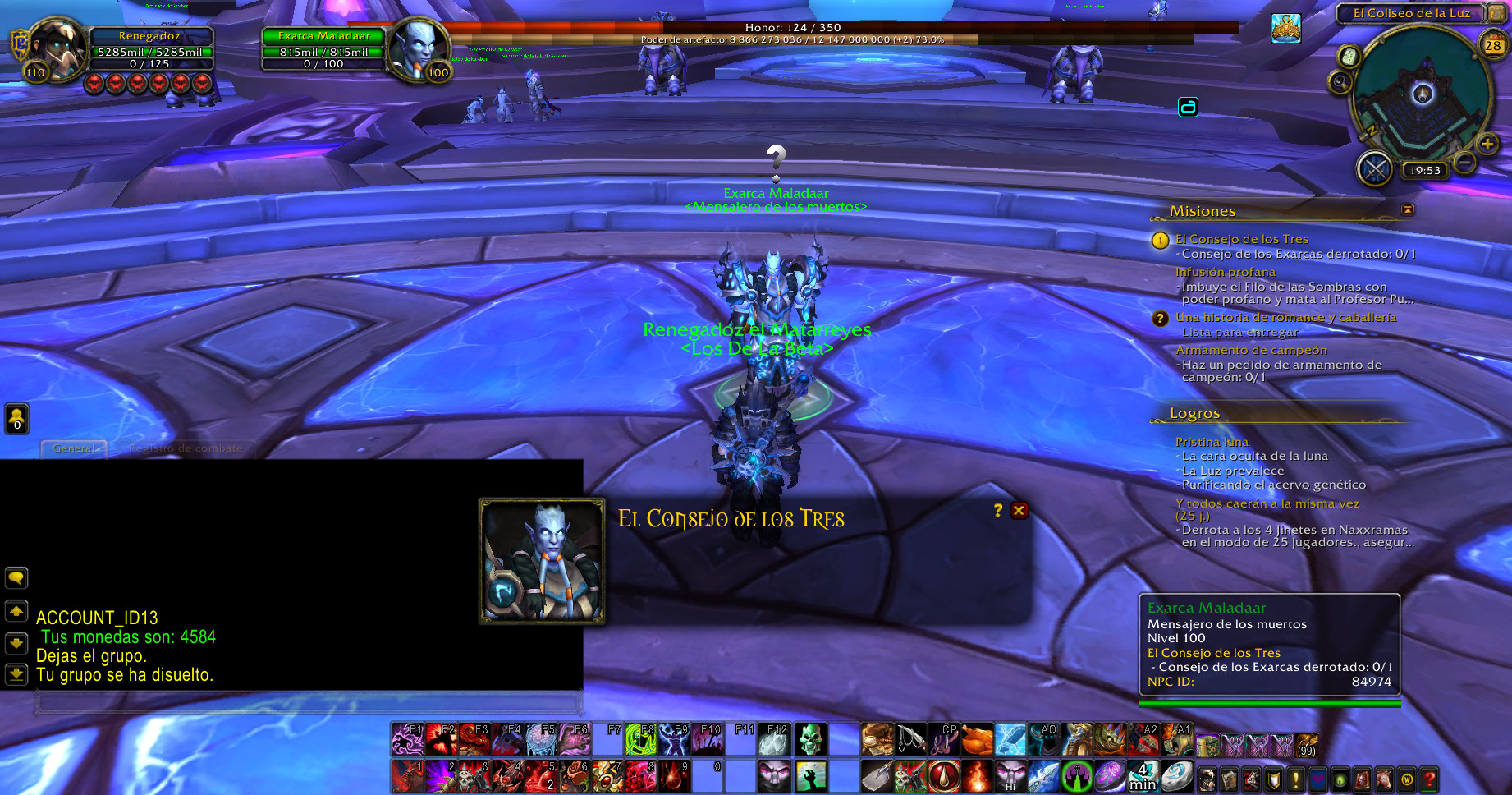 Los NPC Exarch Maladaar <Speaker for the Dead> no atacan ni se puede atacarle, permanece amistoso, cuando se le debe de derrotar.