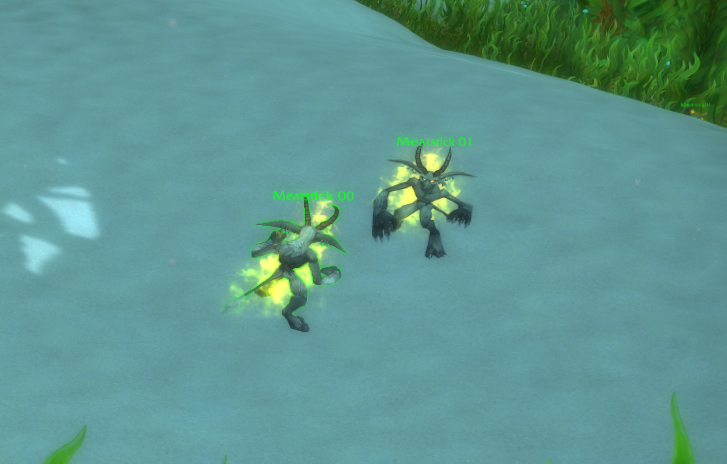Two NPC's by the names of Meatstick 00 and Meatstick 01. Located throughout Kelp'Ther Forest in Vashj'ir.