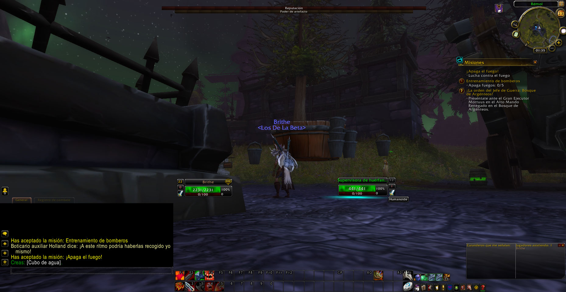 https://www.wowhead.com/quest=11449/fire-training https://www.wowhead.com/item=32971/water-bucket https://www.youtube.com/watch?v=RoUxzp6Wzcc
