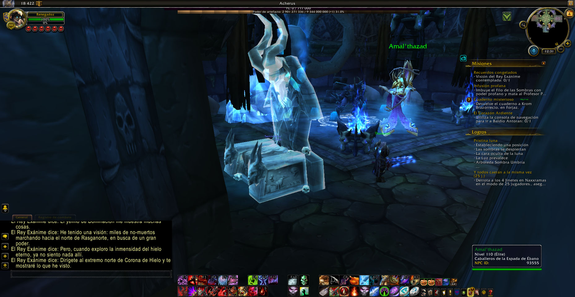 Al hacer la misión Amal'thazad's Message nos teletransportamos a la parte superior del Archerus y allí vemos al Lich King en posición sentado, pero no tiene su silla, la silla esta en el 1er piso al lado del NPC Amal'thazad, esa silla se puede ver desde que uno entra en la primera vez de la sede, de por si pensaba que era una forja o algo, adjunto un enlace a video donde se ve la misión y la parte donde esta sentado el LK.