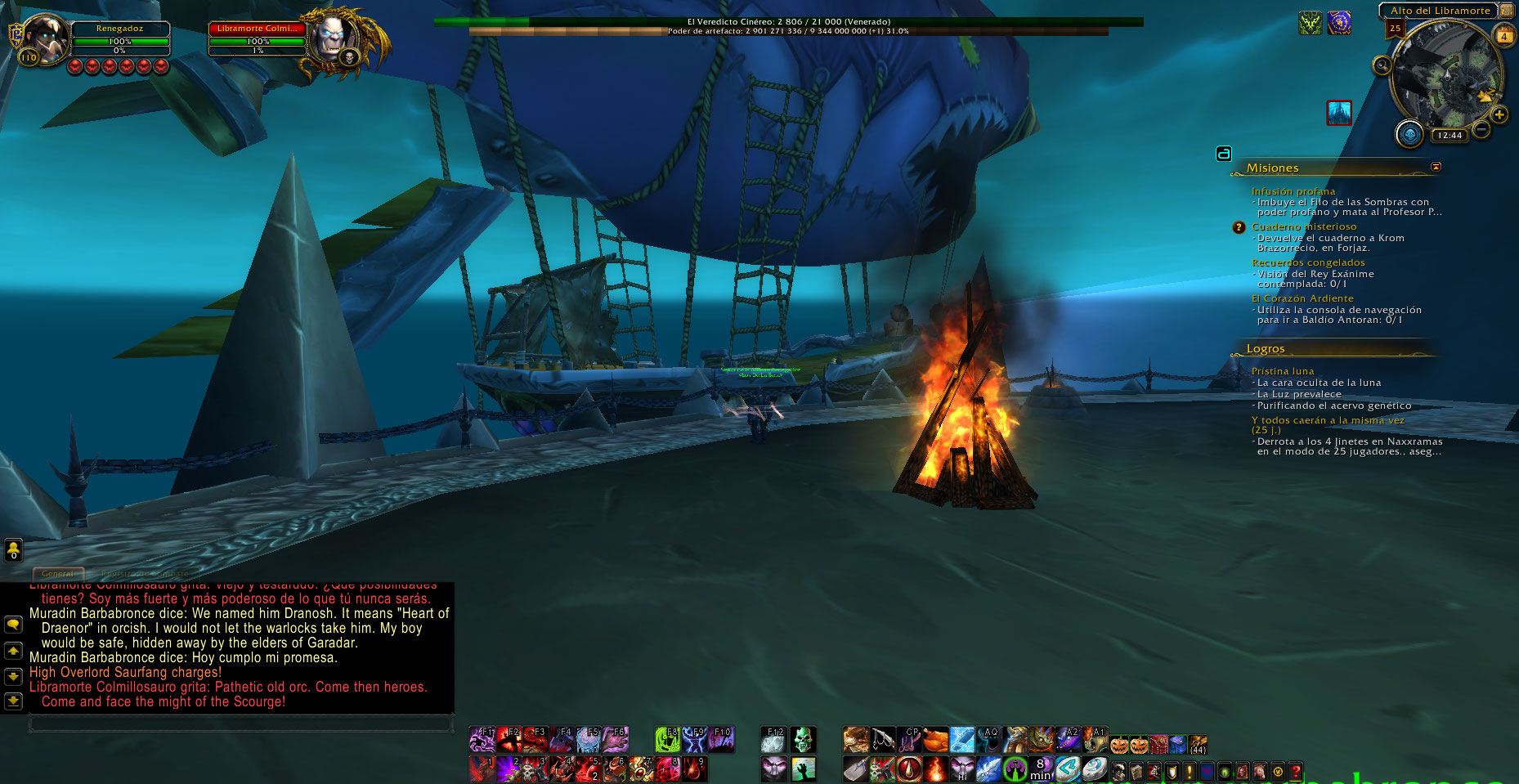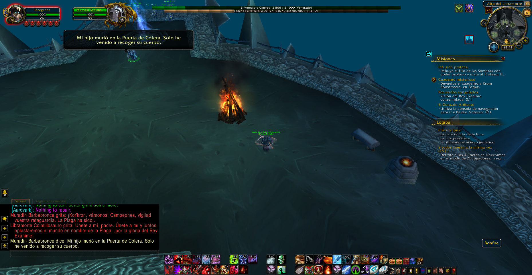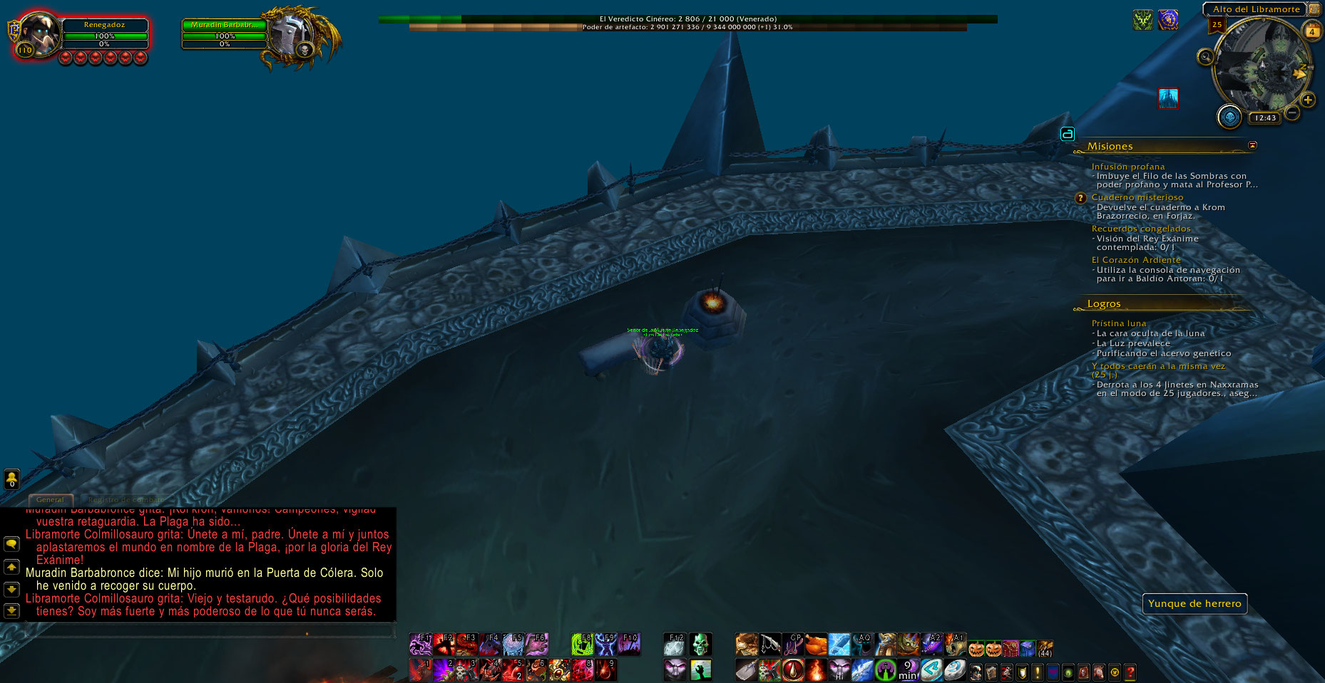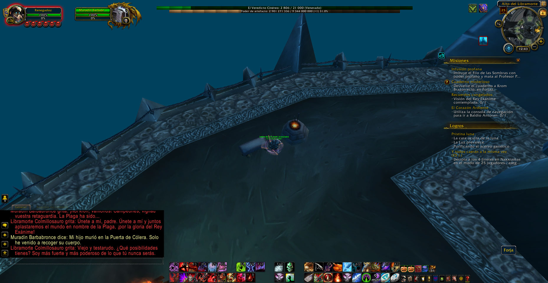 Al entrar hoy en ICC 25 normal me percate que en la batalla contra el boss Deathbringer Saurfang, en su plataforma hay una forja, fogata y yunque de herrero, aparte el zeepeling aparece antes y después de pelear con este jefe Deathbringer Saurfang, cuando debería ser solo al finalizar.