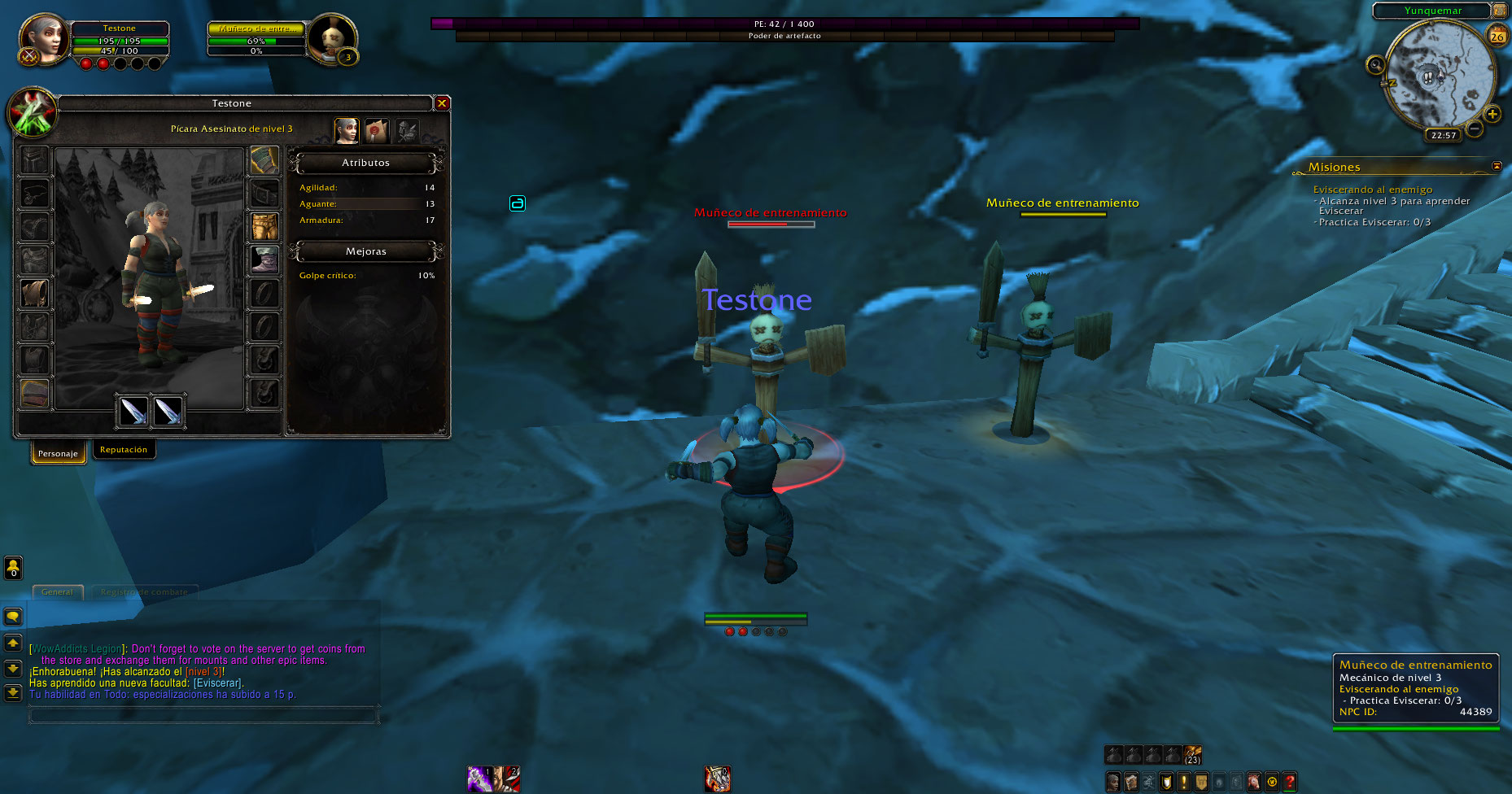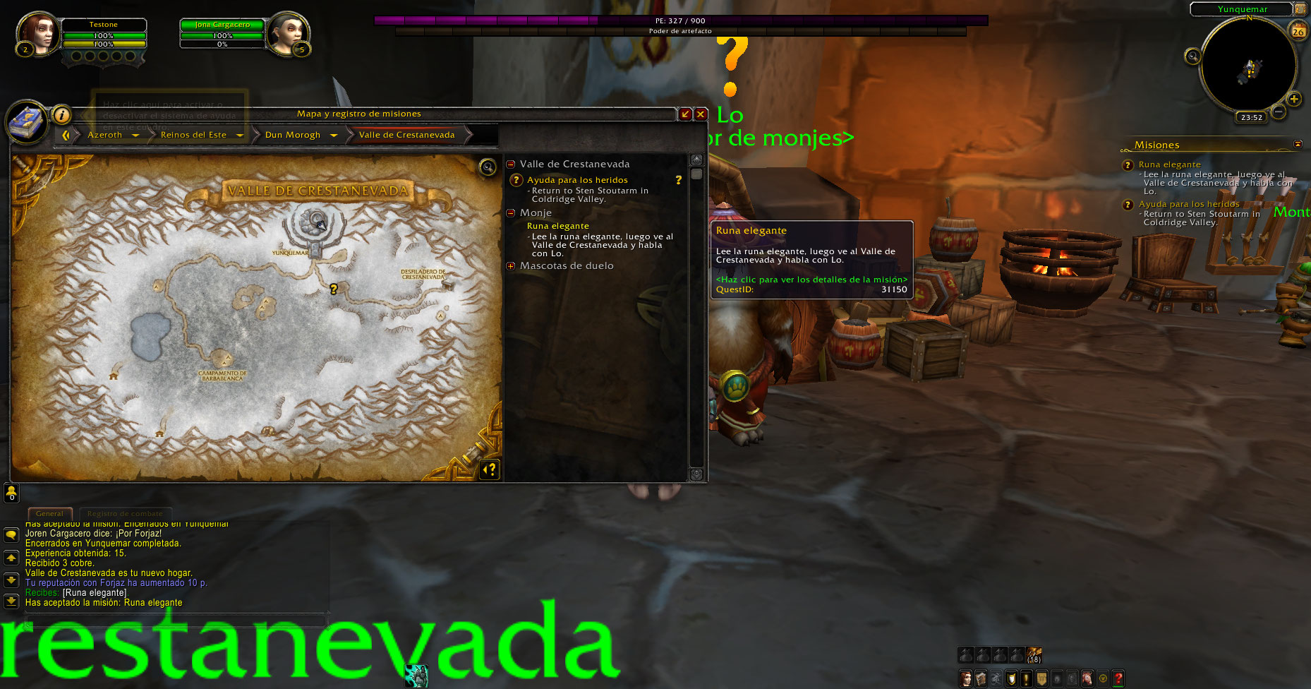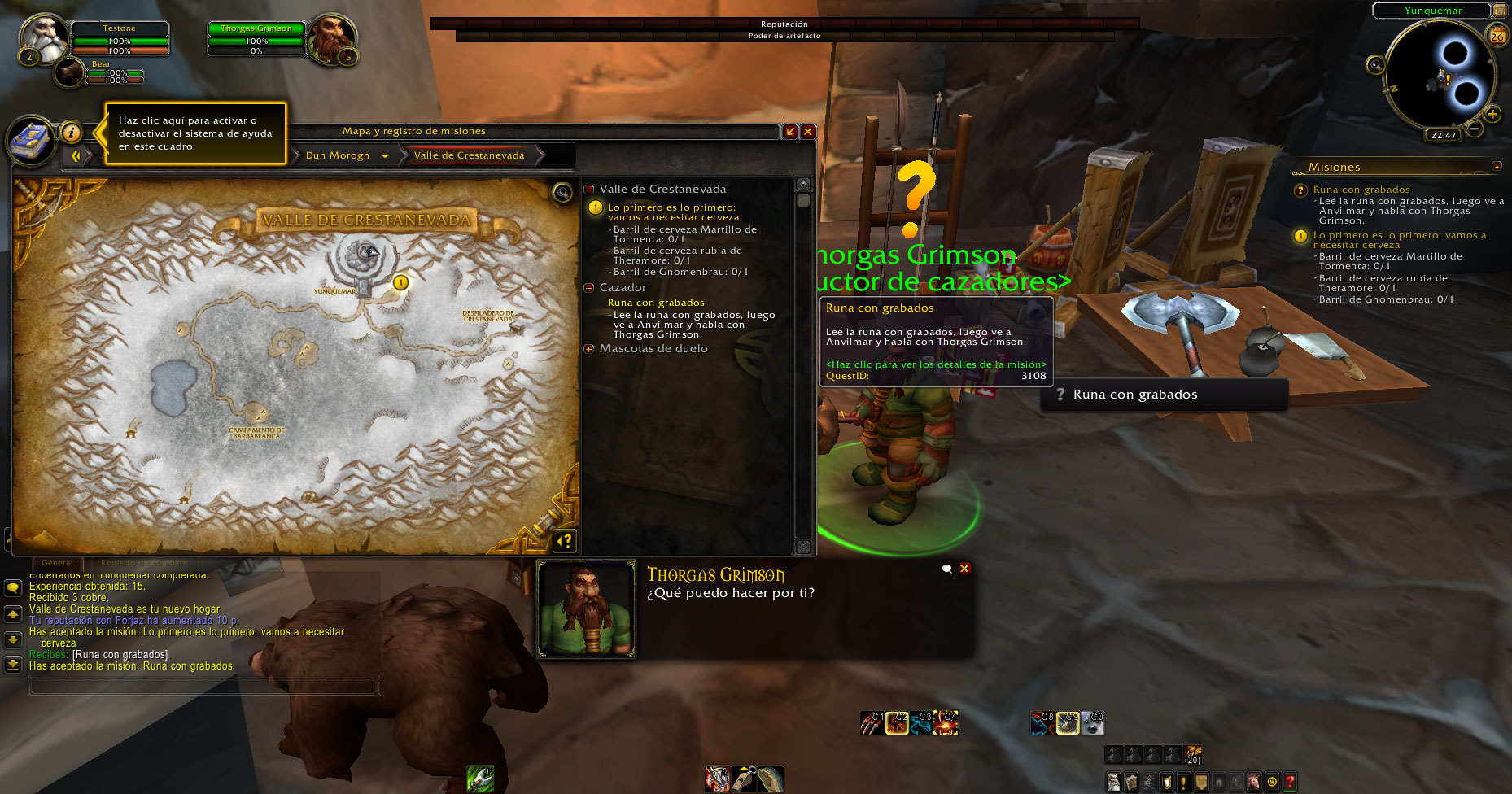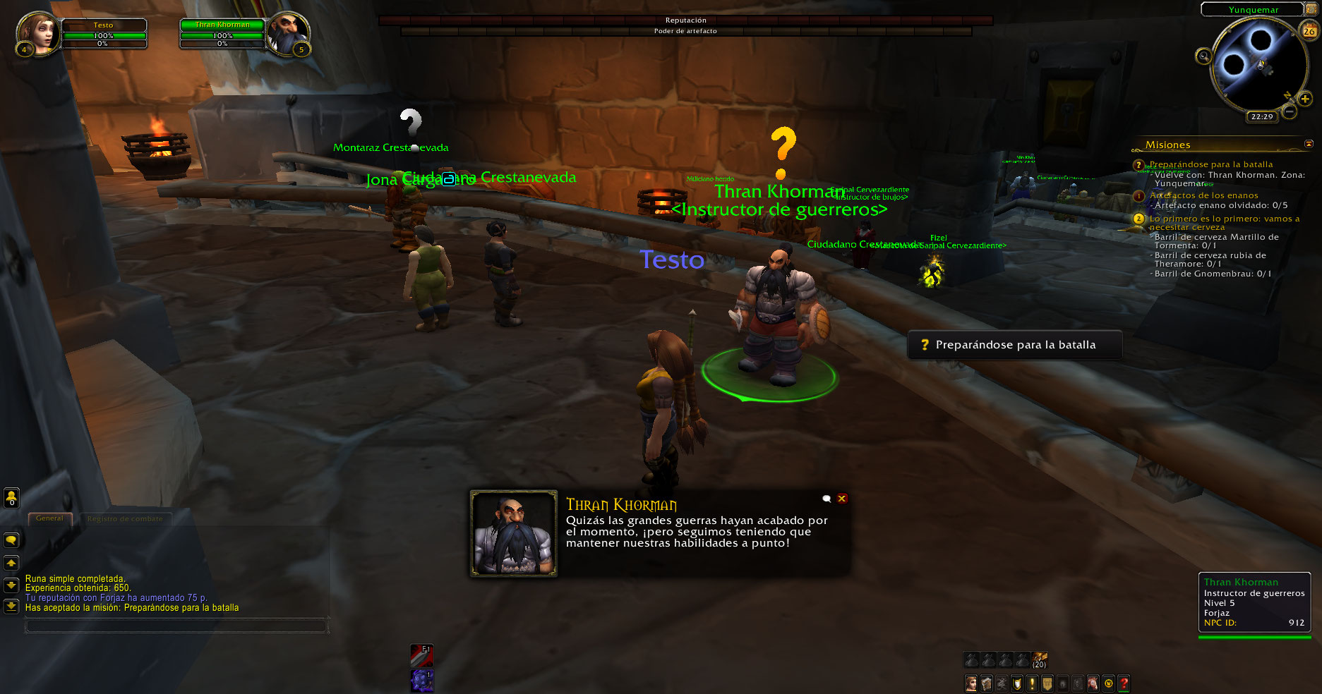https://www.wowhead.com/quest=3108/etched-rune (El NPC no tenía la misión de subir a nivel 3 y practicar un poder)