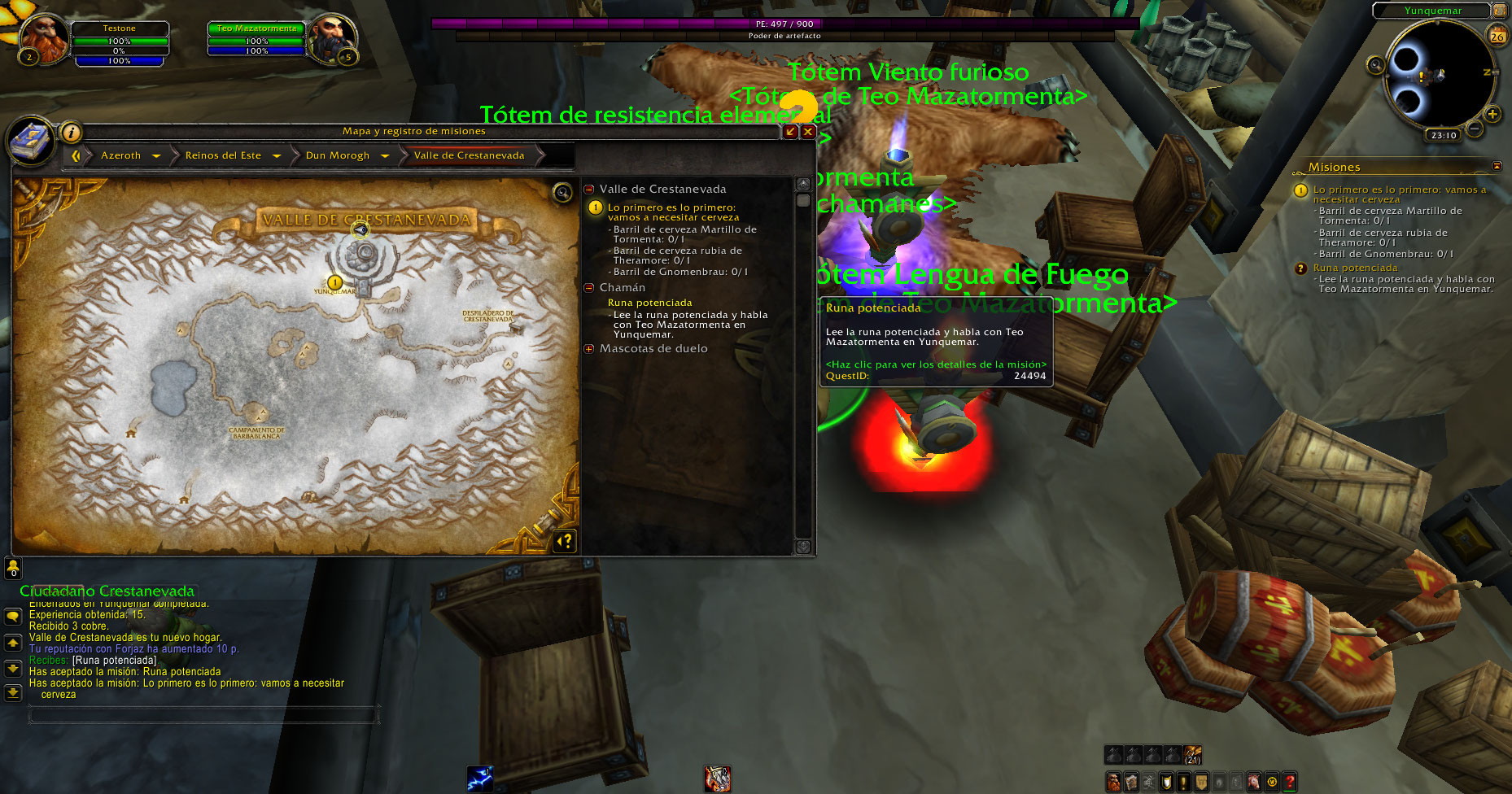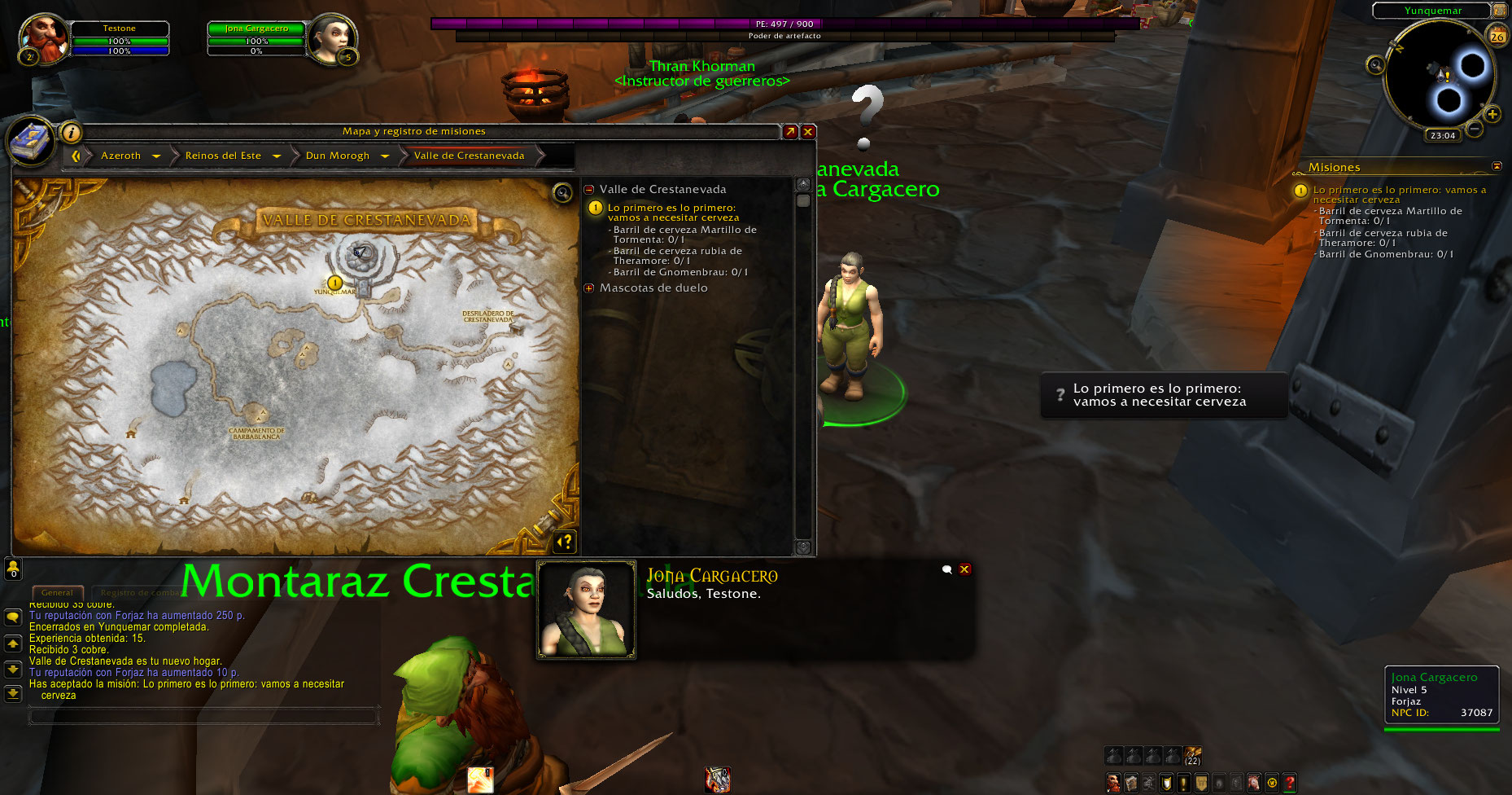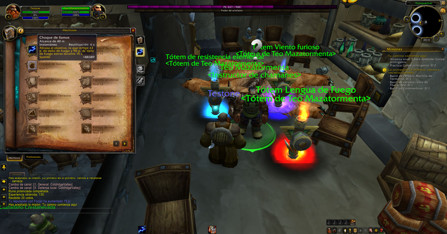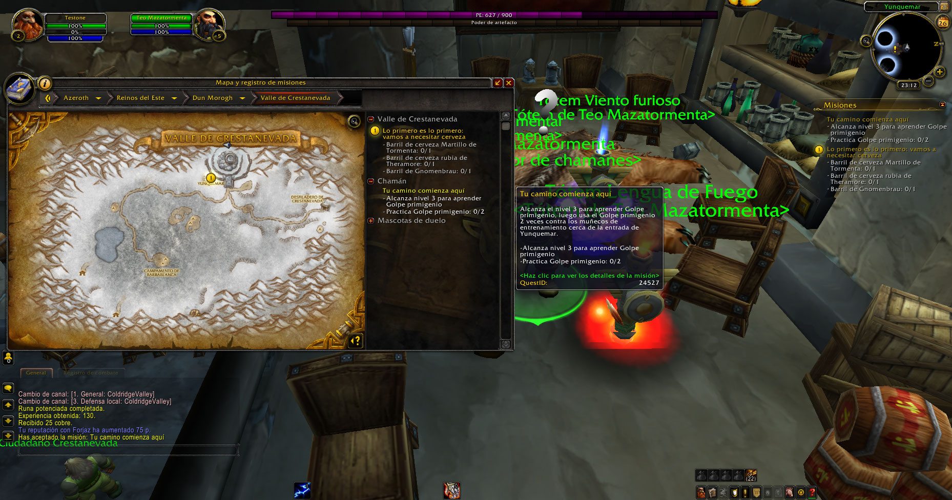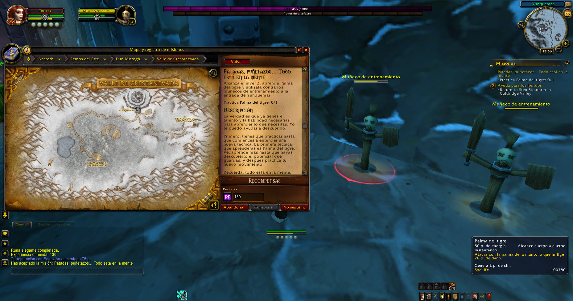 https://www.wowhead.com/quest=3108/etched-rune (El NPC no tenía la misión de subir a nivel 3 y practicar un poder)
