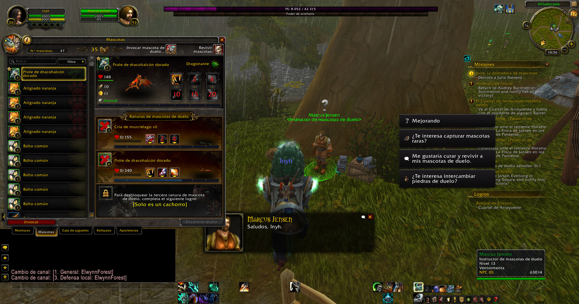 El NPC Marcus Jensen <Battle Pet Trainer> no cura ni revive a las mascotas de batalla, pero si cobra los 10 de plata.