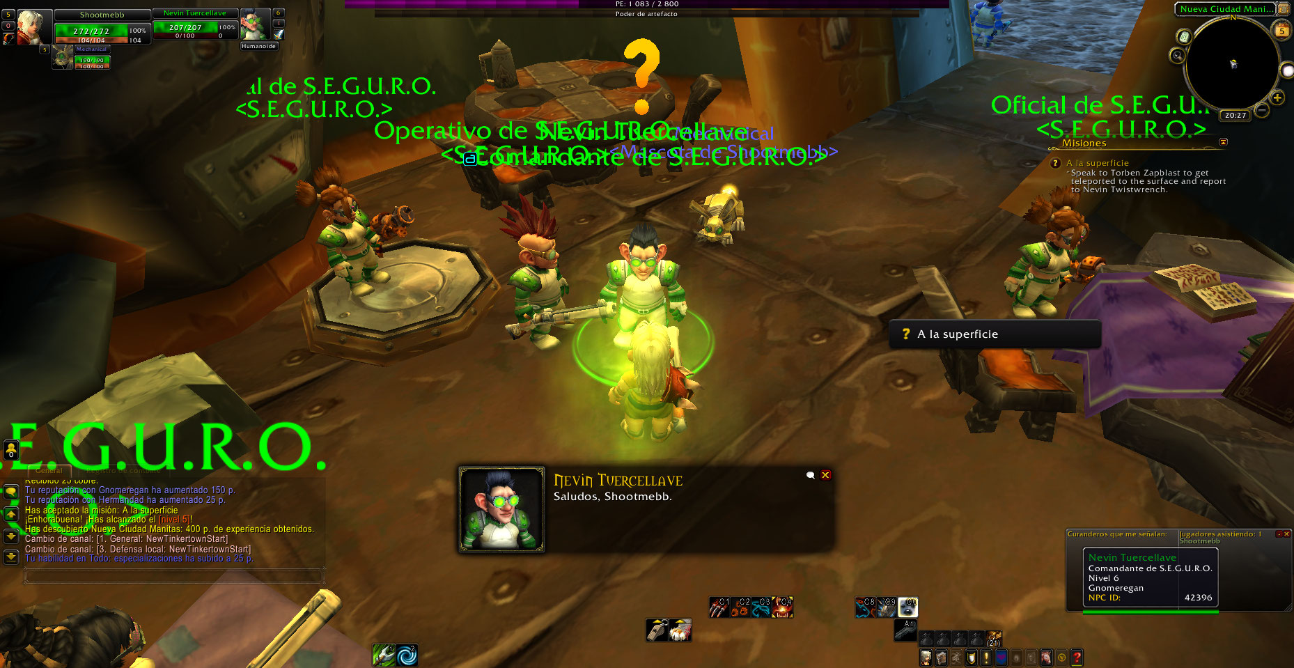 Falta la quest The Future of Gnomeregan en el NPC Nevin Twistwrench, cada clase tiene su misión y falta esta en el cazador, sin ella no se puede continuar porque envía al maestro de clase Muffinus Chromebrew y este da la misión Meet the High Tinker.