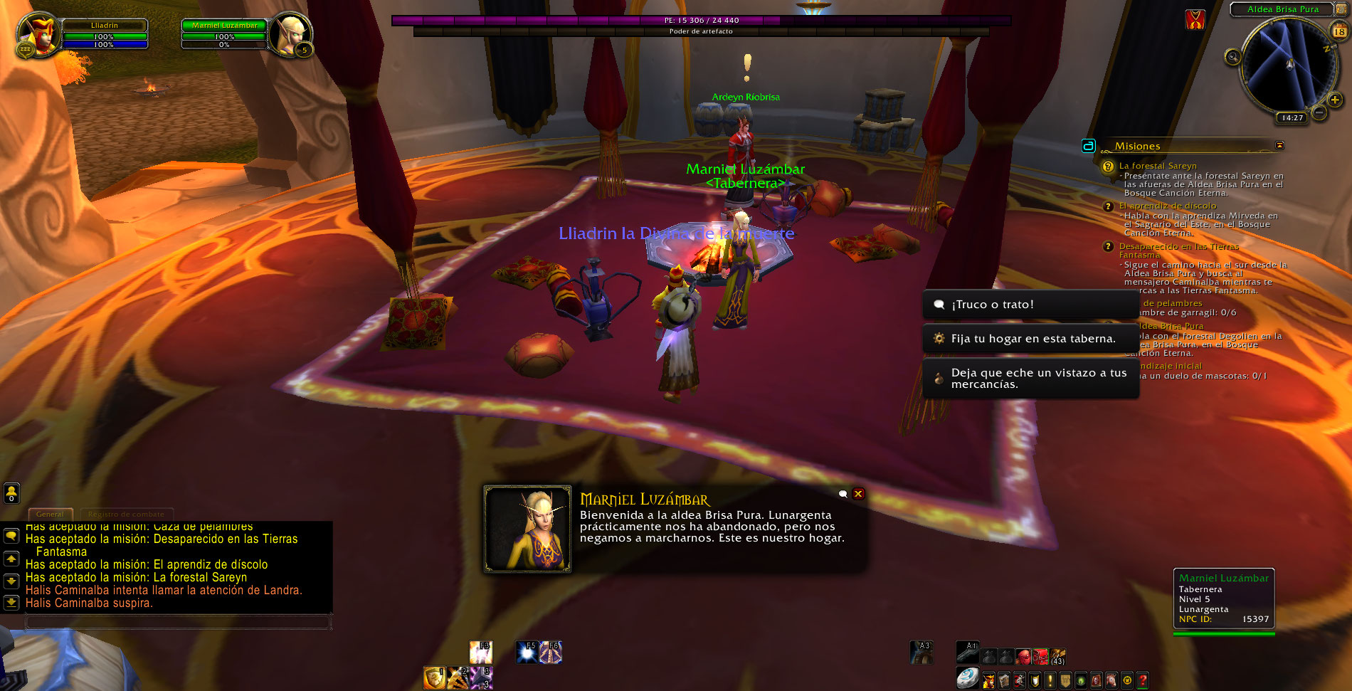 El NPC Marniel Amberlight ya tiene activo la opción de Truco o Trato que pertenece al evento de Halloween.