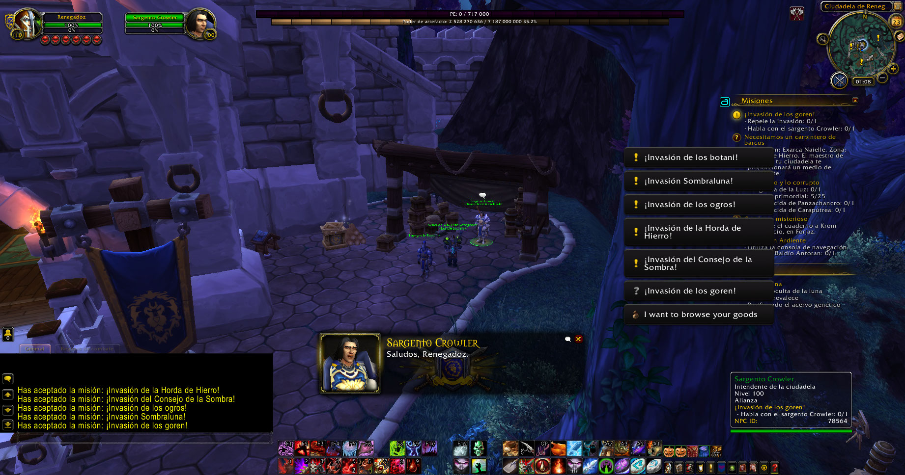 https://www.wowhead.com/quest=36376/goren-invasion https://www.wowhead.com/es/npc=78564/sargento-crowler https://www.youtube.com/watch?v=gU80IzvmudQ