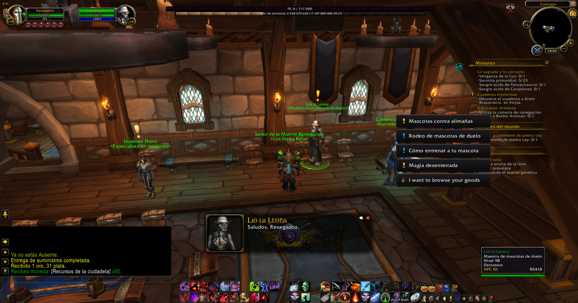 El NPC Lio the Lioness se mueve por varias partes de la ciudadela e incluso atraviesa estructuras, WoWhead solo marca dos lugares (muy cercanos el uno del otro) donde se ve a este NPC.