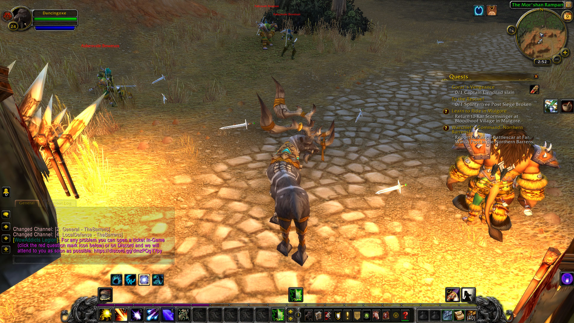 Instead of the NPC's fighting, theres a bunch of floating swords just moving around at the entrance to Ashenvale from the Horde side.