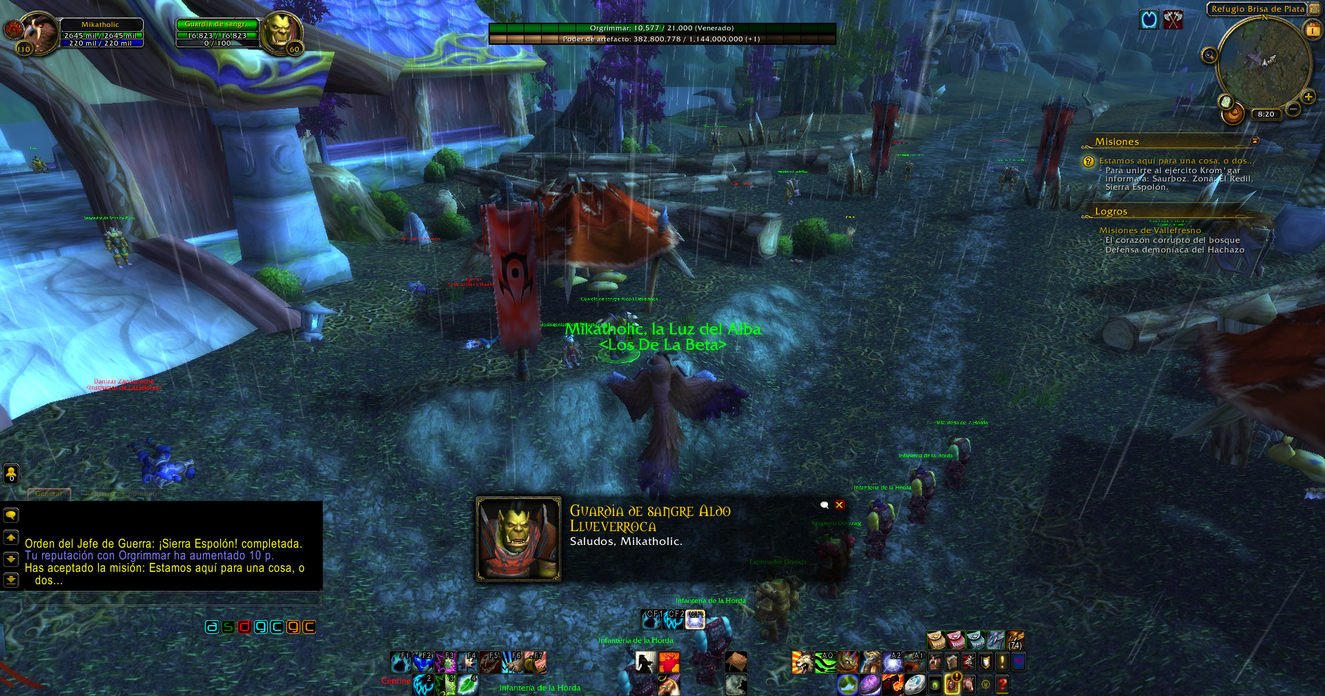 Falta la misión We're Here to Do One Thing, Maybe Two… (quest=25945) en el NPC Blood Guard Aldo Rockrain (npc=41678)