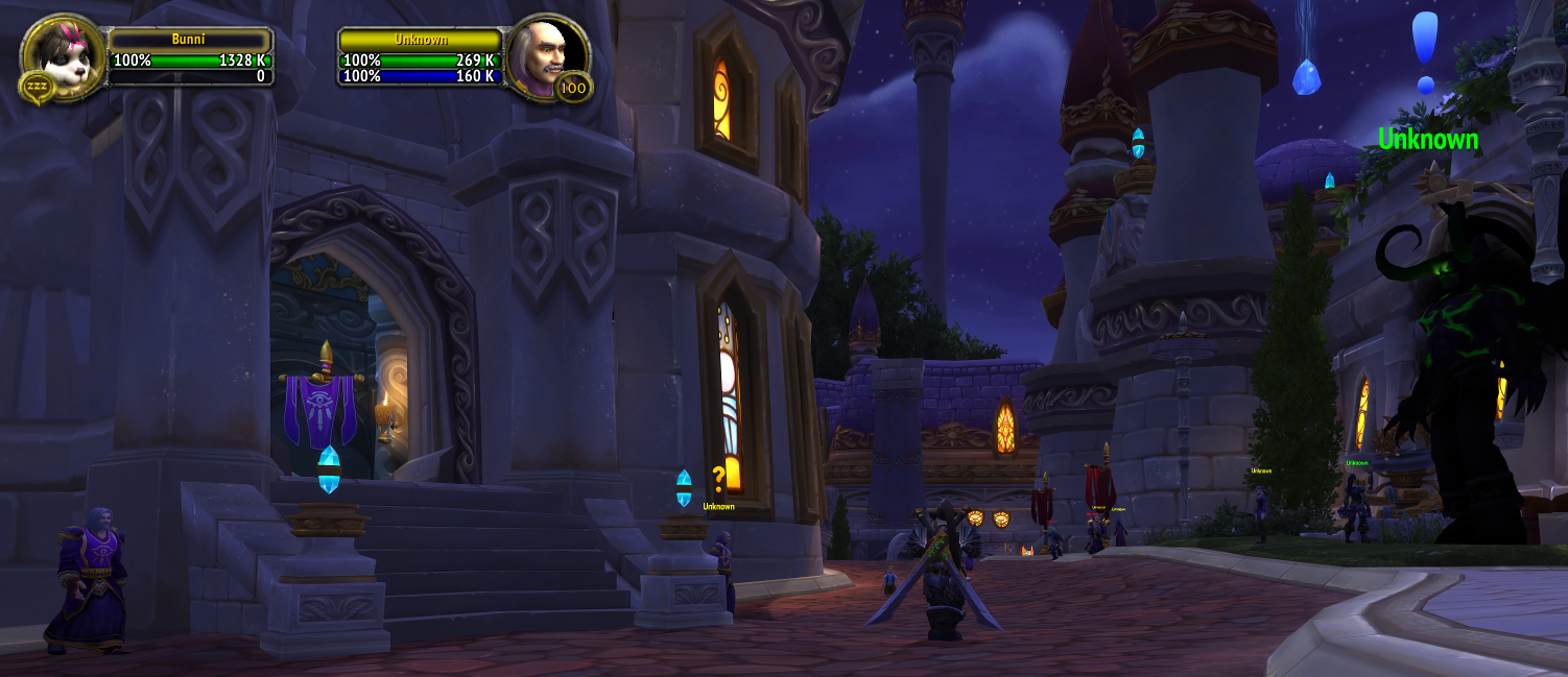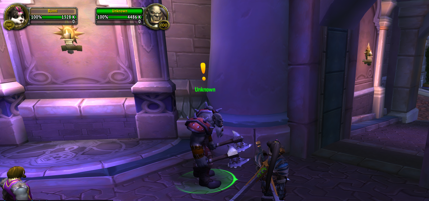 So i was doing the quest line https://www.wowhead.com/quest=44182/city-under-siege where after i had talked to Archmage Khadgar i got teleported to where the first image show with all the npcs called unknown and i cant turn in the quest and i for some reason have the orc following